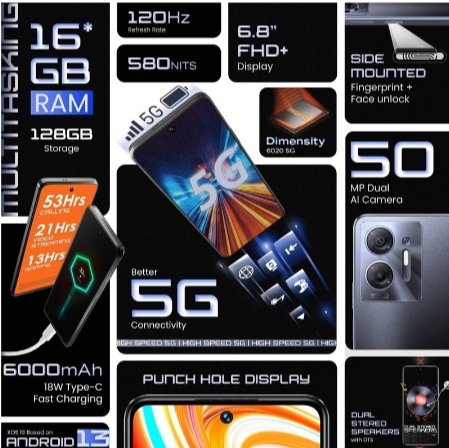 جوال انفينكس HOT 30 سعة ذاكرة 128 جيجا رام 16 جيجا (8+8) 5G
