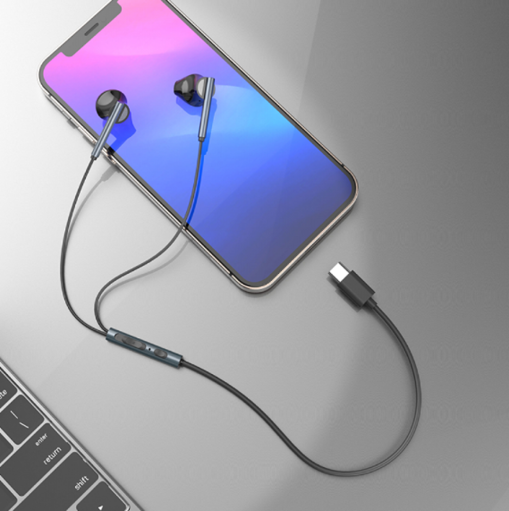 سماعة اذن سلكية بمنفذ التايب سي - أسود