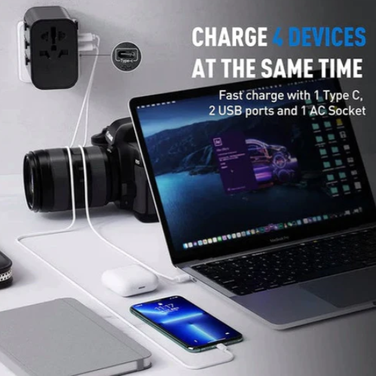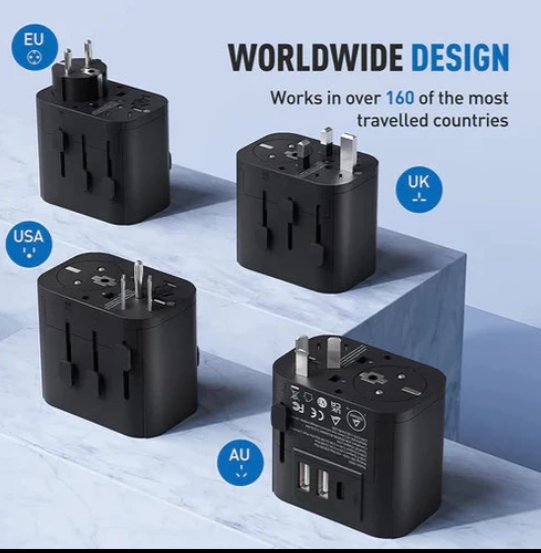 #انكر شاحن جداري رأس دولي 3منافذ 30 واط اسود