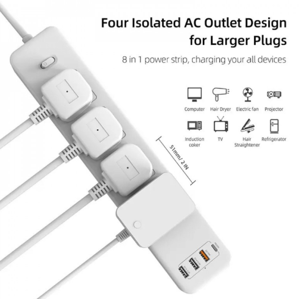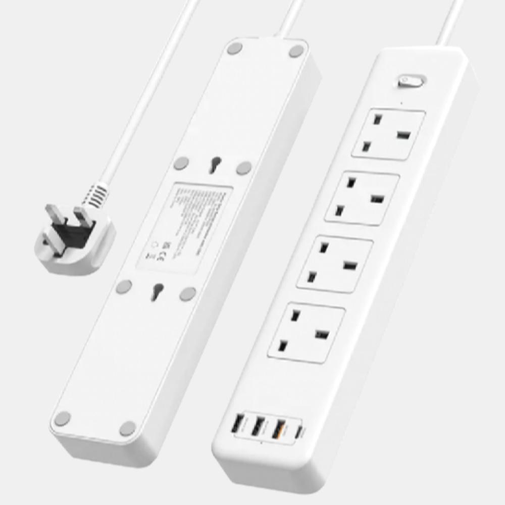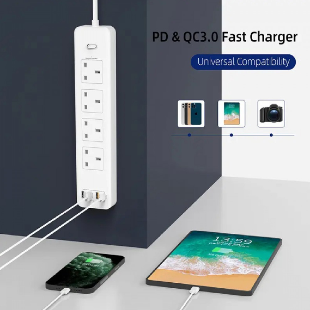 شاحن متعدد النافذ بتوصيلة كهربائية بسلك طوله 3 م، تدعم تقنية الشحن السريع بقوة 32 واط